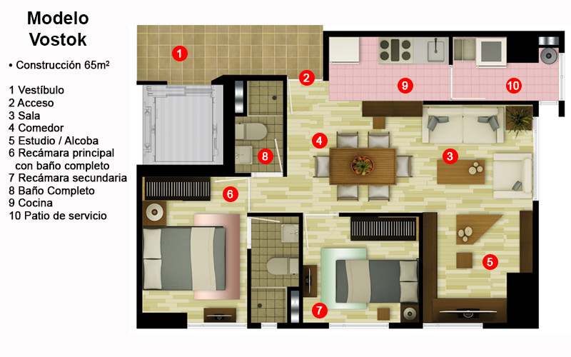 El sembrado de los edificios se plantea de tal manera que puedas disfrutar al máximo de áreas verdes, áreas de juego, plazas y plazoletas, bordeando a cada uno de ellos.